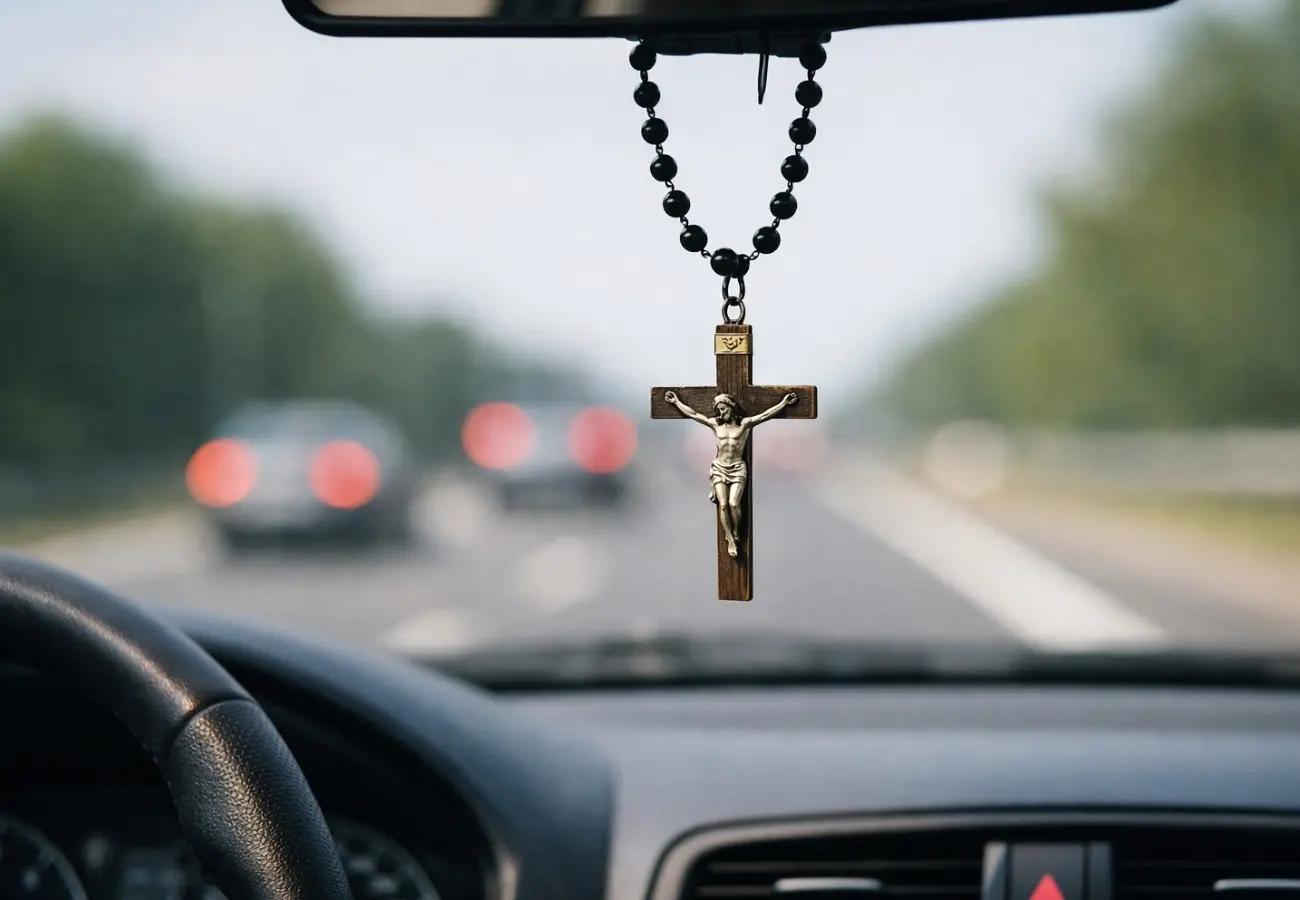 Crucifijos, rosarios y otros adornos: el riesgo de perder visibilidad y dinero por un detalle en el retrovisor